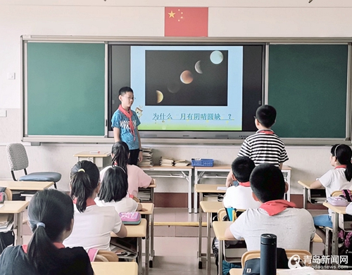 月亮為什么會(huì)有陰晴圓缺的變化?潮汐是怎樣形成的?月球與人類有什么密切關(guān)系?……帶著這些問題,孩子們查閱資料,交流分享,共同探究。