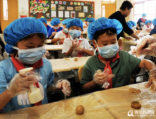 利用綜合實(shí)踐課,孩子們?cè)诶蠋?、家長(zhǎng)代表的指導(dǎo)下,了解中秋來歷、感受傳統(tǒng)習(xí)俗,稱量物品質(zhì)量、動(dòng)腦設(shè)計(jì)圖案、親自制作月餅。