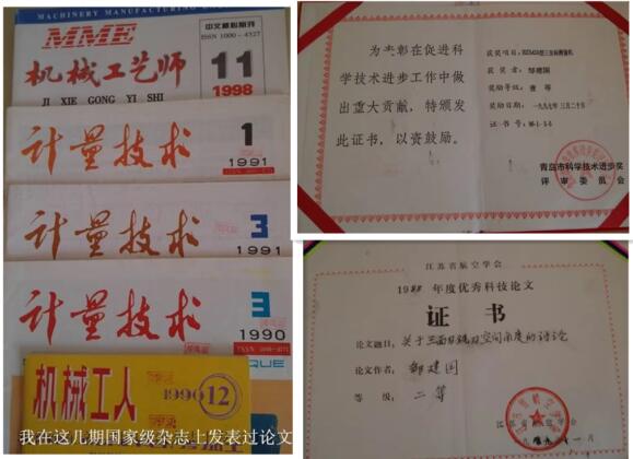 “春蠶到死絲方盡,蠟炬成灰淚始干”的詩句將永遠激勵我追求一種高尚的境界。我實現(xiàn)了50多年前的誓言:為航空工業(yè)貢獻了自己的畢生精力。技術(shù)上我在國家級刊物上發(fā)表過多篇論文,〔注2〕取得過多項專利,〔注3〕獲得過青島市科技進步一等獎,〔注4〕航空工業(yè)部二等獎,江蘇航空學(xué)會優(yōu)秀論文二等獎……;文學(xué)上在報紙、〔注5〕電臺也發(fā)表過多篇散文,謳歌、懷念為革命做出貢獻的前輩;幾十年來,用日記和詩詞記錄下自己的奮斗路程,寫下了五百余首詩詞;人品上我無愧于共產(chǎn)黨員的稱號。雖然沒干出轟轟烈烈的大事業(yè),但我堂堂正正、光明磊落、一身正氣,對自己的前半生無怨無悔。兌現(xiàn)了老一輩給我起“建國”這個名字的初心和愿望。