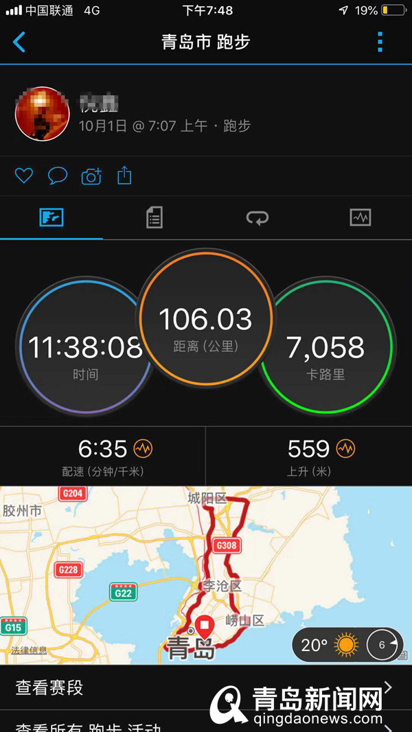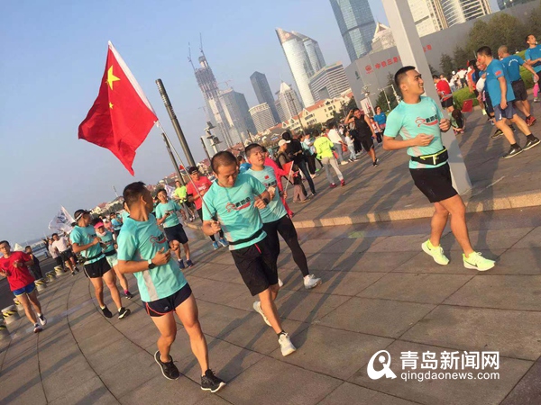 10月1日晚7點左右,跑者在終點五四廣場匯合。