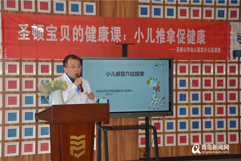 青島新聞網(wǎng)11月12日訊 為深入貫徹落實“不忘初心、牢記使命”主題教育,進一步推動“健康市南”建設,11月12日下午,市南區(qū)衛(wèi)生健康局聯(lián)合山東省青島療養(yǎng)院康保中心走進青島市市南區(qū)圣頓公學幼兒園,共同開展“中醫(yī)進校園,小兒推拿促健康——圣頓公學幼兒園家長公益課堂”主題活動。山東省青島療養(yǎng)院康保中心推拿科主任魏乾坤給家長們帶來了生動、實用的健康知識講座。