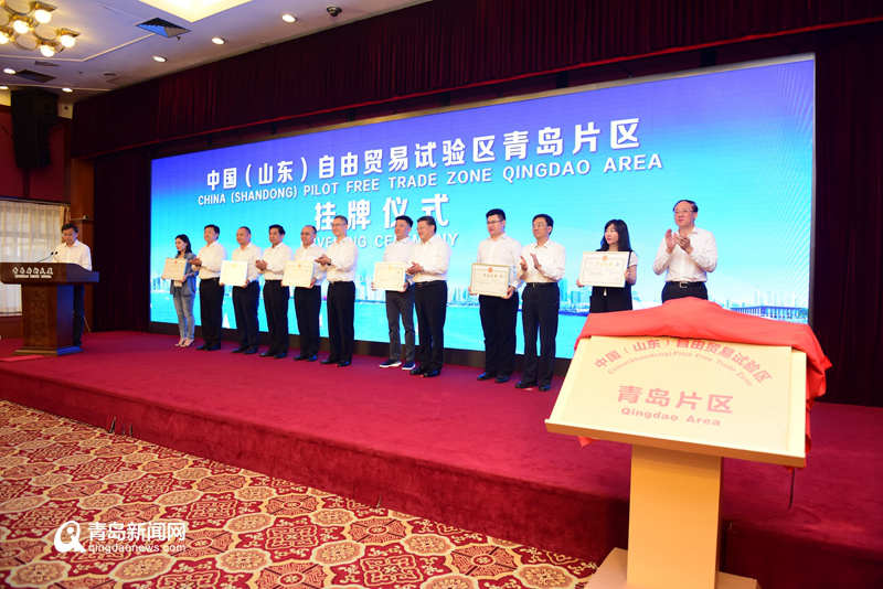 山東自貿(mào)區(qū)青島片區(qū)掛牌儀式。(孫志文 攝)