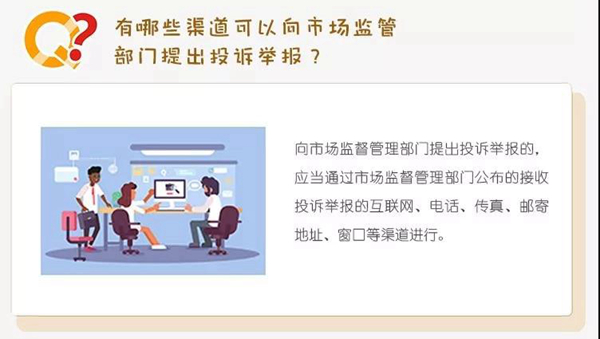 《辦法》第三十六條規(guī)定,市場監(jiān)督管理部門應(yīng)當(dāng)暢通全國12315平臺(tái)、12315專用電話等投訴舉報(bào)接收渠道,實(shí)行統(tǒng)一的投訴舉報(bào)數(shù)據(jù)標(biāo)準(zhǔn)和用戶規(guī)則,實(shí)現(xiàn)全國投訴舉報(bào)信息一體化。大家可以通過市場監(jiān)管部門公布的接受投訴舉報(bào)的互聯(lián)網(wǎng)、電話、傳真、郵寄地址、窗口等渠道進(jìn)行投訴舉報(bào)。