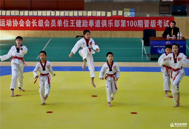 青島新聞網(wǎng)1月2日訊 (記者劉文超)元旦當天,青島市跆拳道運動協(xié)會在青島三十九中徐殿平柔道館舉行2020年協(xié)會示范晉級考試暨會長級會員單位——王健跆拳道俱樂部第100期晉級考試。本次升級考試有近200位跆拳道學(xué)員參加考試,參加考試的學(xué)員均來自王健跆拳道館鼎城道館、鼎都道館、高新區(qū)道館、城陽道館四家分館的學(xué)員,其中最小年齡5歲,最大14歲。升級內(nèi)容分為基本手部動作、品勢、腿法、擊破、體能,五項內(nèi)容進行。