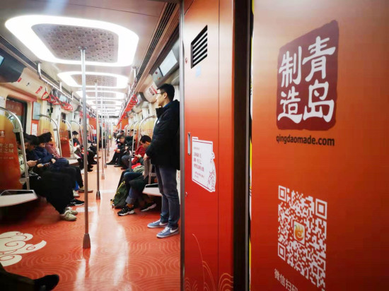 記者在現(xiàn)場看到,高速行進(jìn)的地鐵2號線上,被喜慶的中國紅裝點的車廂吸引了市民的注意。記者跟隨市民一起乘上了這列地鐵,車廂里散發(fā)著濃濃的年味,“青島制造”幾個大字映入眼簾,隨處可見的青島品牌,海爾、海信、青啤、澳柯瑪、恒尼……令人振奮。