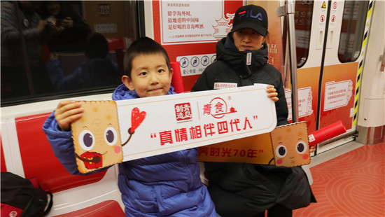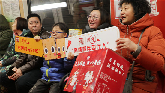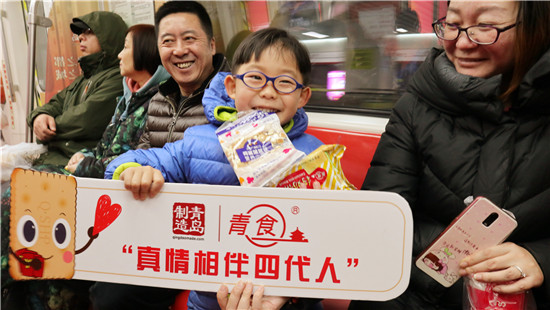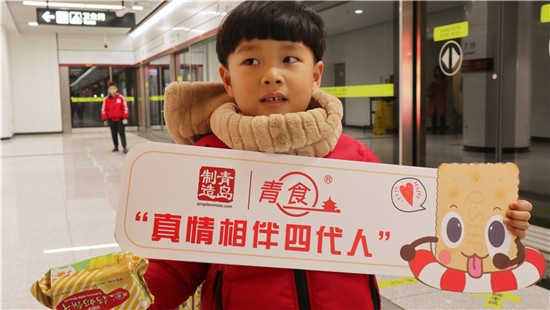 一位中年男乘客告訴記者,“我們家三代人都是吃著青食長大的,青島人就認咱自己的品牌?!笨粗⒆邮掷锱e著鈣奶餅干,他說,”他爺爺就認青食,平時不讓我們給孩子隨便買零食,擔心食品安全,害怕有添加劑,就認鈣奶餅干。”一旁的爺爺認真說道,“當然,吃了多少年了,絕對放心?!焙唵蔚娜詢烧Z,透出青島人對青食的信賴,代代相傳。