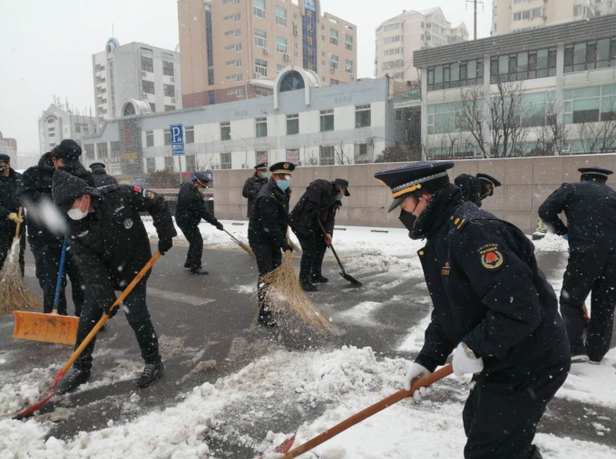 冰雪災(zāi)害預(yù)警也是命令!始終保持疫情防控“戰(zhàn)時狀態(tài)”的市北區(qū)綜合行政執(zhí)法局,早已沒有周末的概念,全局30余人早早地趕到單位,在局領(lǐng)導(dǎo)的帶領(lǐng)下,黨員干部帶頭走進冰天雪地,積極清理辦公區(qū)域及周邊道路的冰雪。