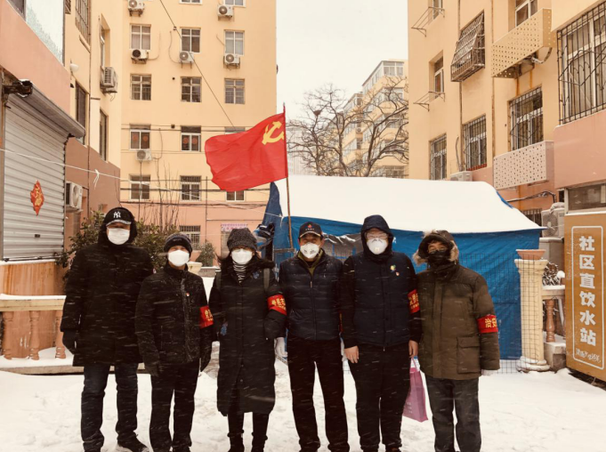 阜新路街道工作人員頂風(fēng)冒雪,持續(xù)堅守在疫情防控一線。各監(jiān)測點紛紛升起黨旗,黨員干部佩戴好黨徽,帶頭值守;工作人員不畏嚴寒,對來往行人、車輛登記并測量體溫;轄區(qū)群眾積極配合,并送來了方便面、電水壺等慰問品。大家紛紛表示,升起黨旗就是升起希望,有了黨員就有了主心骨。在黨和政府的領(lǐng)導(dǎo)下,只要團結(jié)一心,眾志成城,就一定能夠早日戰(zhàn)勝疫情。