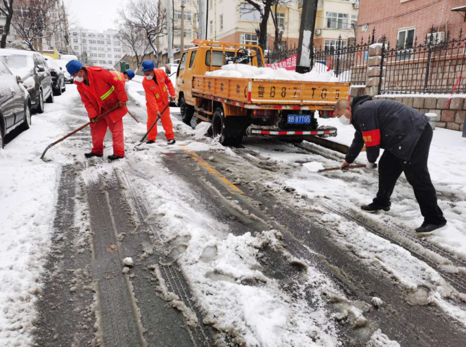 雙山街道黨工委迅速行動,街道上下戮力同心,以雪為令,繼續(xù)堅守防疫一線,并組織動員街道全部力量、各社區(qū)黨委及轄區(qū)物業(yè)組成紅色戰(zhàn)隊,共計200余人,準備鐵锨、竹掃把、推雪板等工具,按照清雪工作統(tǒng)一部署,對轄區(qū)重點道路、物業(yè)小區(qū)及易滑易堵點做好清雪除冰工作,確保轄區(qū)道路順暢,居民出行安全。
