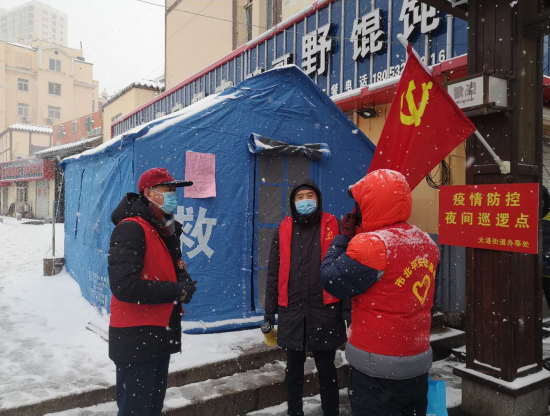 鎮(zhèn)江路街道黨員志愿者們發(fā)揚特別能吃苦、特別能戰(zhàn)斗的精神,在凜冽的風(fēng)雪中堅守疫情防控崗位,發(fā)揮火線上的中堅力量,為轄區(qū)居民筑牢安全防線。