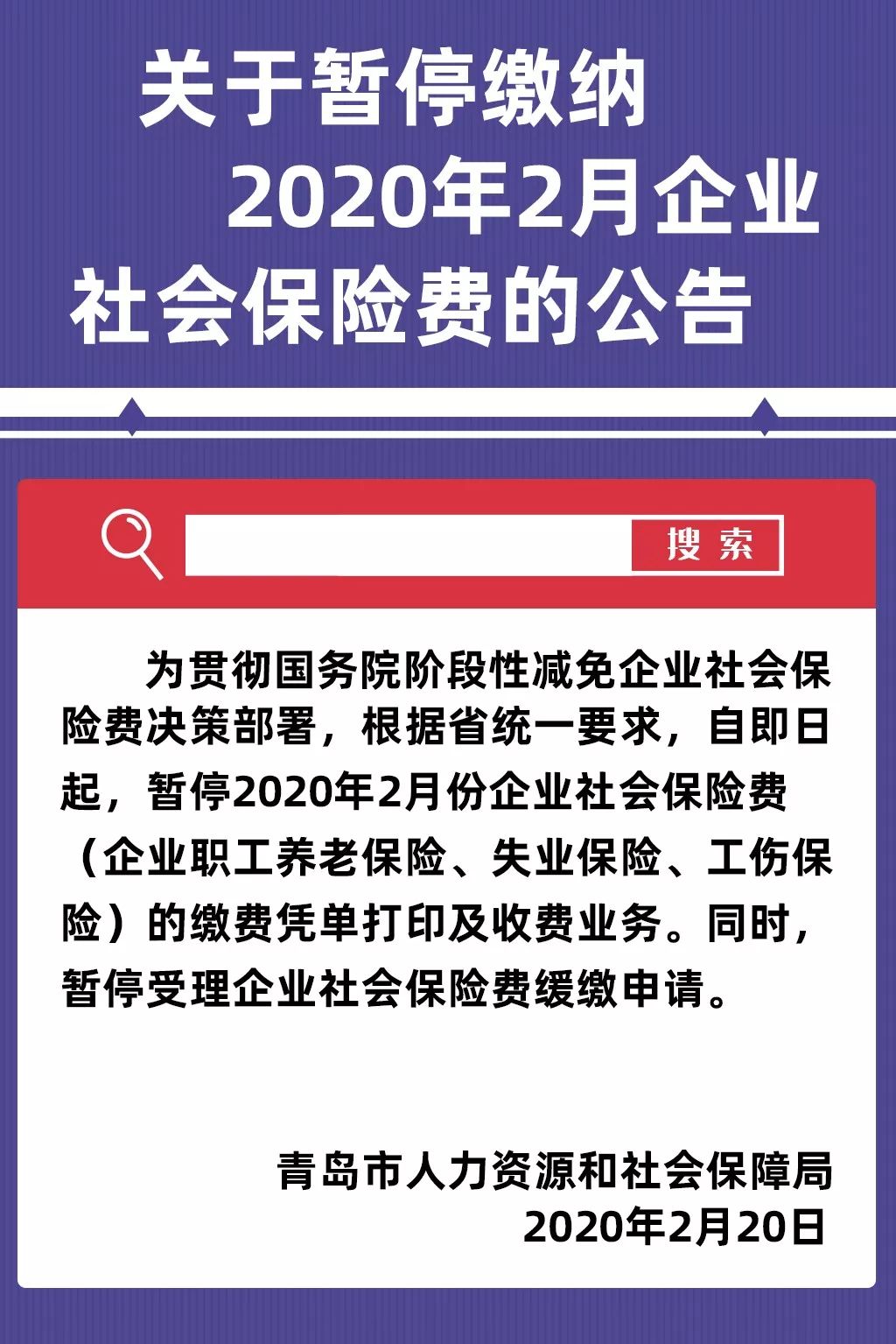 今天,青島市人力資源和社會(huì)保障局發(fā)布公告,為貫徹國(guó)務(wù)院階段性減免企業(yè)社會(huì)保險(xiǎn)費(fèi)決策部署,自即日起,我市將按照全省統(tǒng)一部署暫停2020年2月份企業(yè)社會(huì)保險(xiǎn)費(fèi)(企業(yè)職工養(yǎng)老保險(xiǎn)、失業(yè)保險(xiǎn)、工傷保險(xiǎn))的申報(bào)、繳費(fèi)憑單打印及收費(fèi)業(yè)務(wù)。同時(shí),暫停受理企業(yè)社會(huì)保險(xiǎn)費(fèi)緩繳申請(qǐng)。