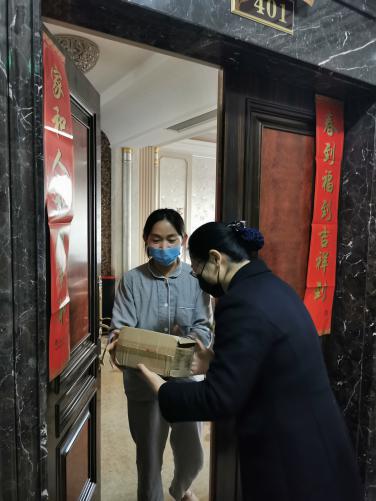 防疫過程中,她主動申請幫助未能及時返青的客服同事,肩負起為業(yè)主送快遞、打印料、辦出入證、張貼通知......工作,不曾有絲毫怨言。她總是嘴上掛著:“多干點活,累不著?,F在正是業(yè)主需要服務的時候,咱干物業(yè)的就應該把服務干好?!痹谒母腥鞠?,團隊的服務更加細致、體貼,業(yè)主們紛紛對物業(yè)的服務給予了認可,體諒物業(yè)一線員工的不易,向物業(yè)捐贈防疫物資,關懷物業(yè)工作人員。