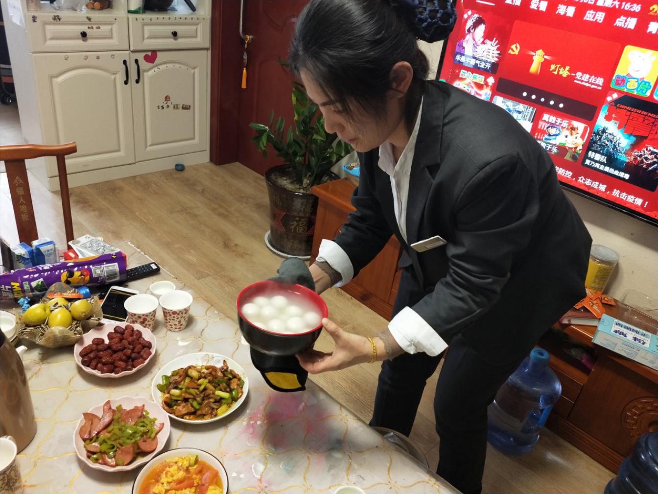 吃飯是孩子最頭疼的事,管家孟花蓮幾次在值班期間抽出時間,與安全主管王勇一起入戶為孩子做飯,這一天是家人團圓的日子-元宵節(jié),得知孩子最愛吃西紅柿炒雞蛋,管家特意到附近超市買來食材,認真清洗后為孩子烹飪。一個菜雖夠孩子吃,卻不夠營養(yǎng),所以,葷素搭配,一個小時功夫,三個菜、圓溜溜的湯圓華麗現(xiàn)身,樂得孩子嘻嘻直笑~管家把孩子吃飯的視頻發(fā)于父母后,業(yè)主連連感謝管家的細心和貼心。