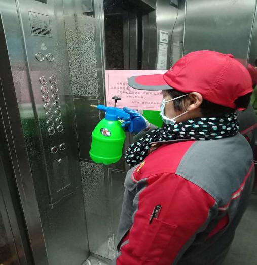 為預(yù)防、控制新型冠狀病毒肺炎在社區(qū)及員工隊伍中傳播擴散,自疫情發(fā)生以來,環(huán)境消殺團隊每日兩次對小區(qū)內(nèi)公共區(qū)域主干道、人行道、人車出入口、大小廣場、健身器材、室外桌椅、垃圾分類點及垃圾中轉(zhuǎn)站等部位進行噴灑消毒,對各單元內(nèi)樓道、門廳及附屬單元門、樓梯扶手等部位噴灑擦拭消毒兩次,特別是單元門把手、電梯按鍵等高頻接觸部位進行重點消毒,并提供“電梯按鍵專用抽紙”,方便居民乘坐電梯。