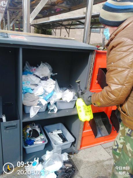 疫情防控期間對廢棄口罩的處理也不能馬虎,垃圾清運團隊在保證做好小區(qū)生活垃圾分類清運工作的同時,毅然承擔(dān)起廢棄口罩的消毒清運工作,按照“先消毒、后打包”的工作流程,做到了不讓口罩成為病毒散播的傳染源。