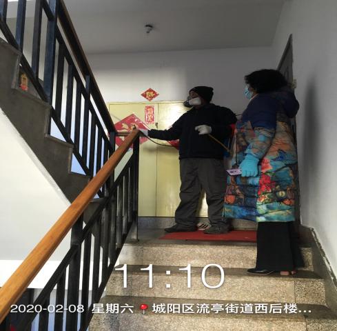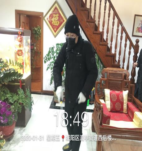 在返鄉(xiāng)人員居家隔離解除后,黨員先鋒崗的黨員同志自告奮勇到隔離戶家中幫助其進行室內(nèi)全面消毒。