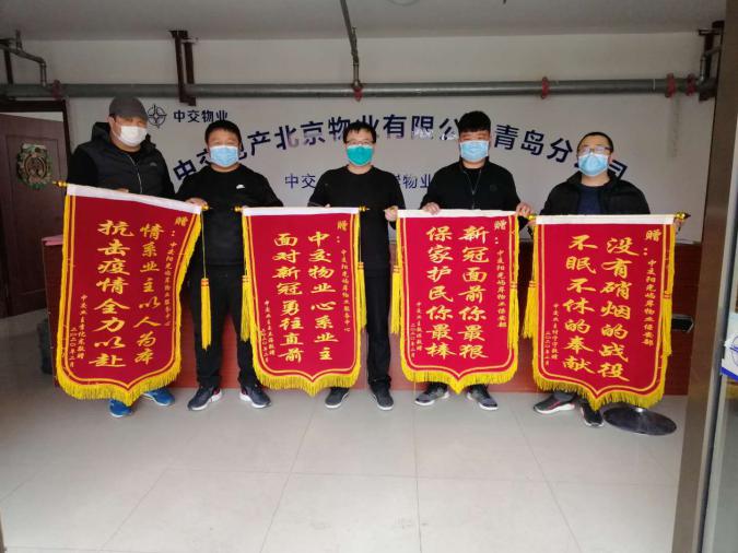 自從防疫以來,小區(qū)物業(yè)工作人員放棄了春節(jié)與家人團聚,不畏懼疫情,毅然堅守崗位,統(tǒng)計外來人員信息,在小區(qū)出入口設立檢查站,加強進入人員的檢查、測溫、消毒工作,加強小區(qū)公共區(qū)域消毒,并做好隔離業(yè)主的服務工作等。2月19日下午,小區(qū)業(yè)主代表為感謝物業(yè)公司這段時間的付出,特意送上了感謝的錦旗。