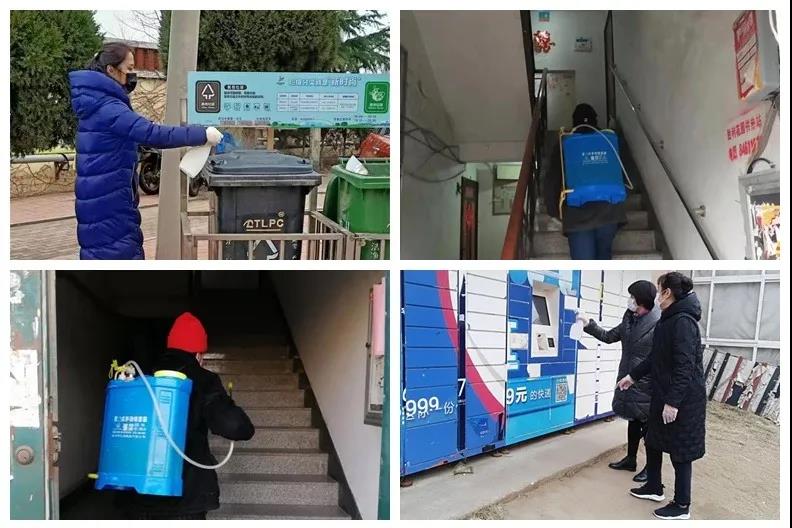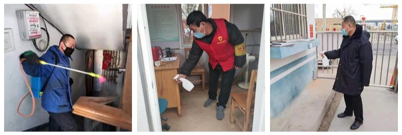 四中一社區(qū)工作人員積極做好疫情監(jiān)測和防范宣傳工作,社區(qū)專門安排保潔人員以及物業(yè)人員每天對轄區(qū)內41棟樓院環(huán)境、單元樓道、廢棄口罩專用收集箱,生活垃圾桶、辦公場所公共區(qū)域等每日進行定時噴灑消毒,對樓梯扶手、門把手進行擦拭消毒,徹底將病毒拒之門外,為轄區(qū)老百姓撐起防護傘。