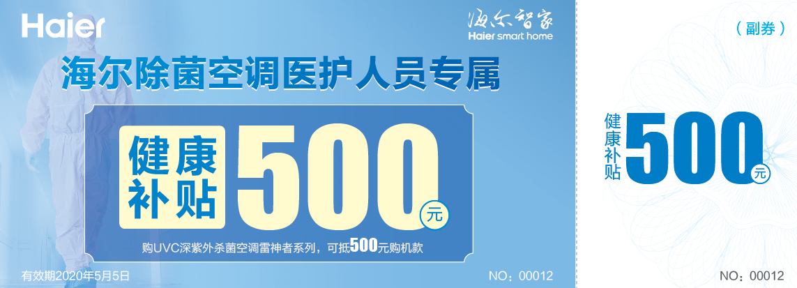 除此之外, 4月1日-4月30日,海爾空調(diào)將為青島援鄂醫(yī)護(hù)人員提供免費(fèi)上門深度清洗空調(diào)的服務(wù),除了免費(fèi)清洗活動(dòng),海爾空調(diào)還豪爽準(zhǔn)備了價(jià)值500元的空調(diào)購(gòu)現(xiàn)金抵用券,通過(guò)醫(yī)院免費(fèi)送給援鄂醫(yī)護(hù)人員。