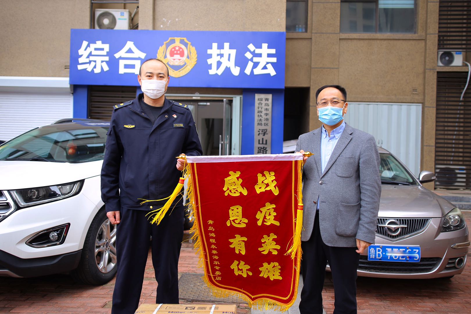 李滄區(qū)浮山路街道相關(guān)工作人員們向海爾表達(dá)了誠(chéng)摯謝意,他們表示,每一分支持、每一絲善意都會(huì)給奔忙的防疫工作者們帶來(lái)溫暖。