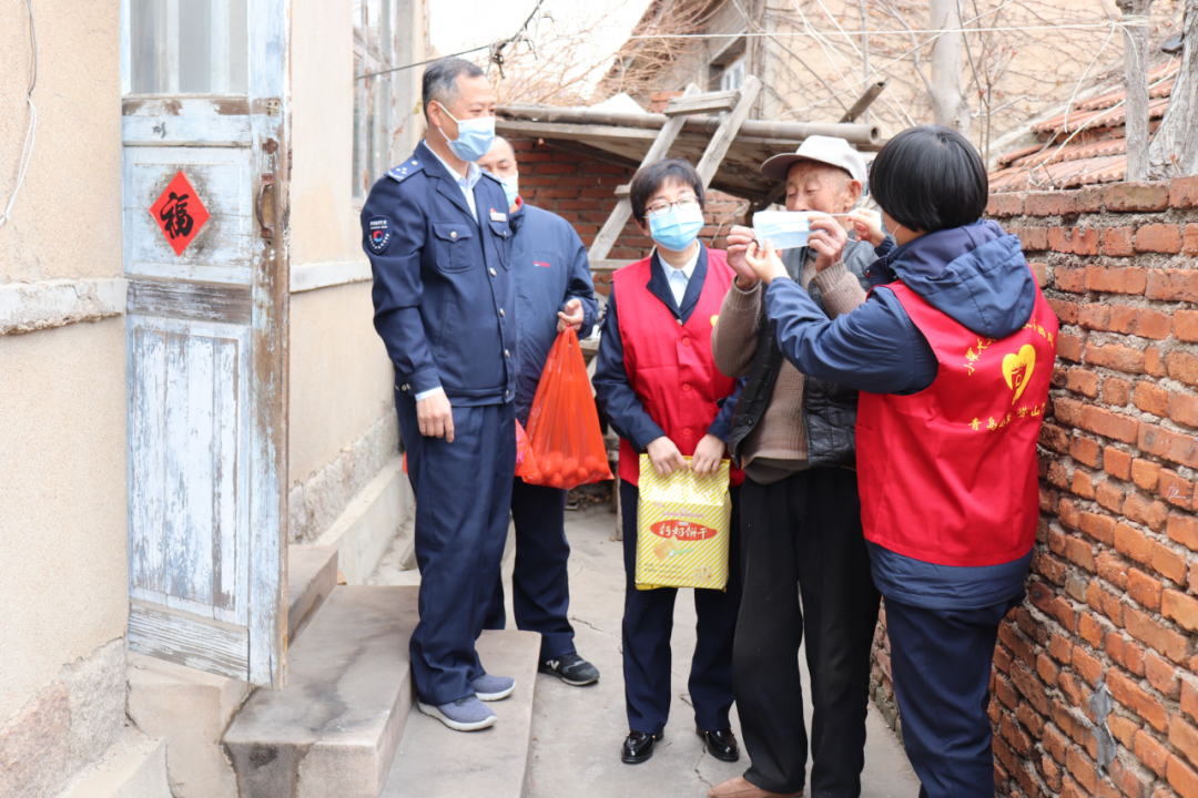 大家?guī)еu蛋、餅干和水果來到嶗山區(qū)北宅街道溝崖社區(qū)臧大爺家探望,并幫助打掃院內(nèi)和房屋衛(wèi)生,整潔家園,讓老人十分感動(dòng)。