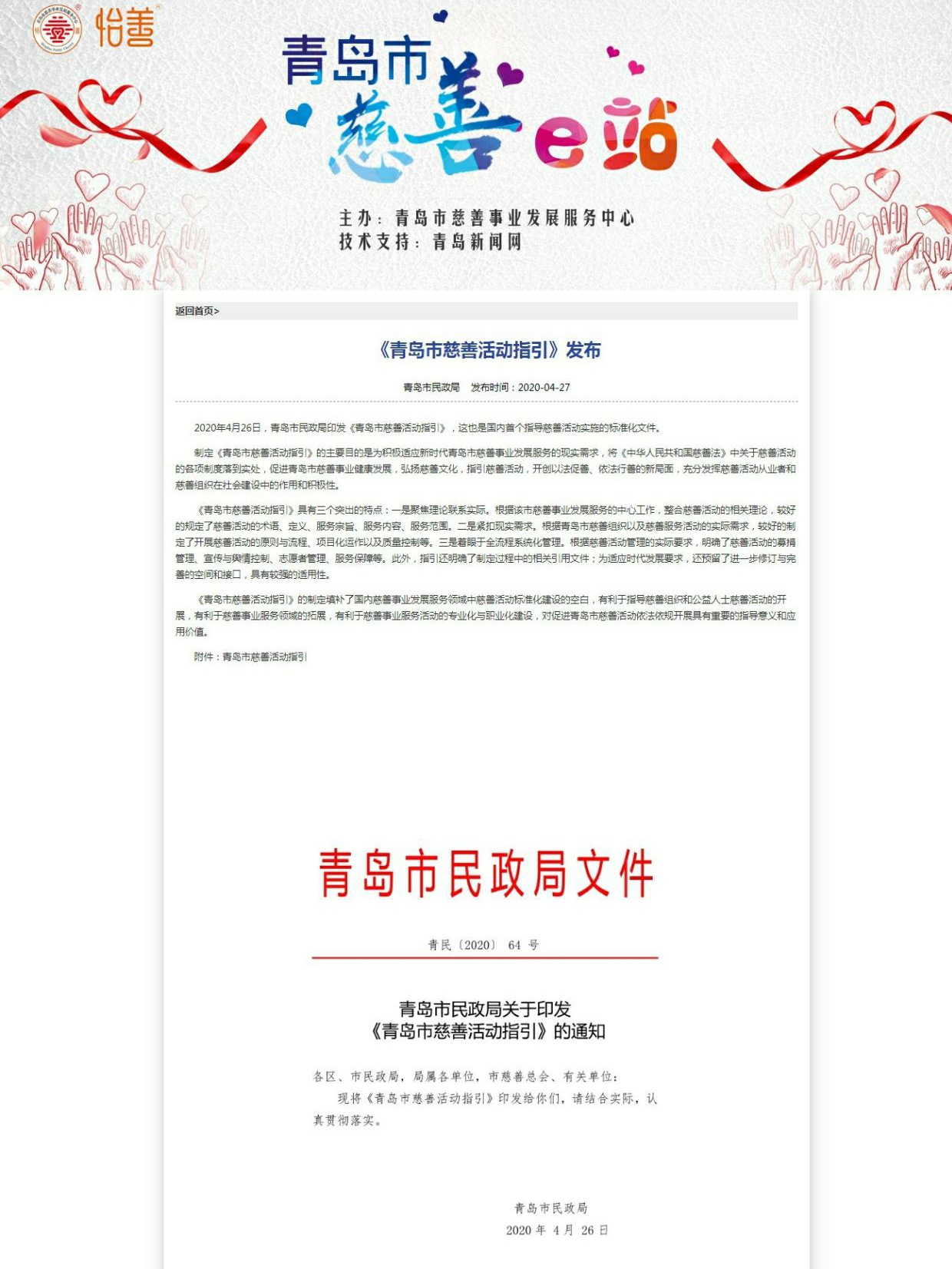 青島新聞網(wǎng):《青島市慈善活動指引》發(fā)布