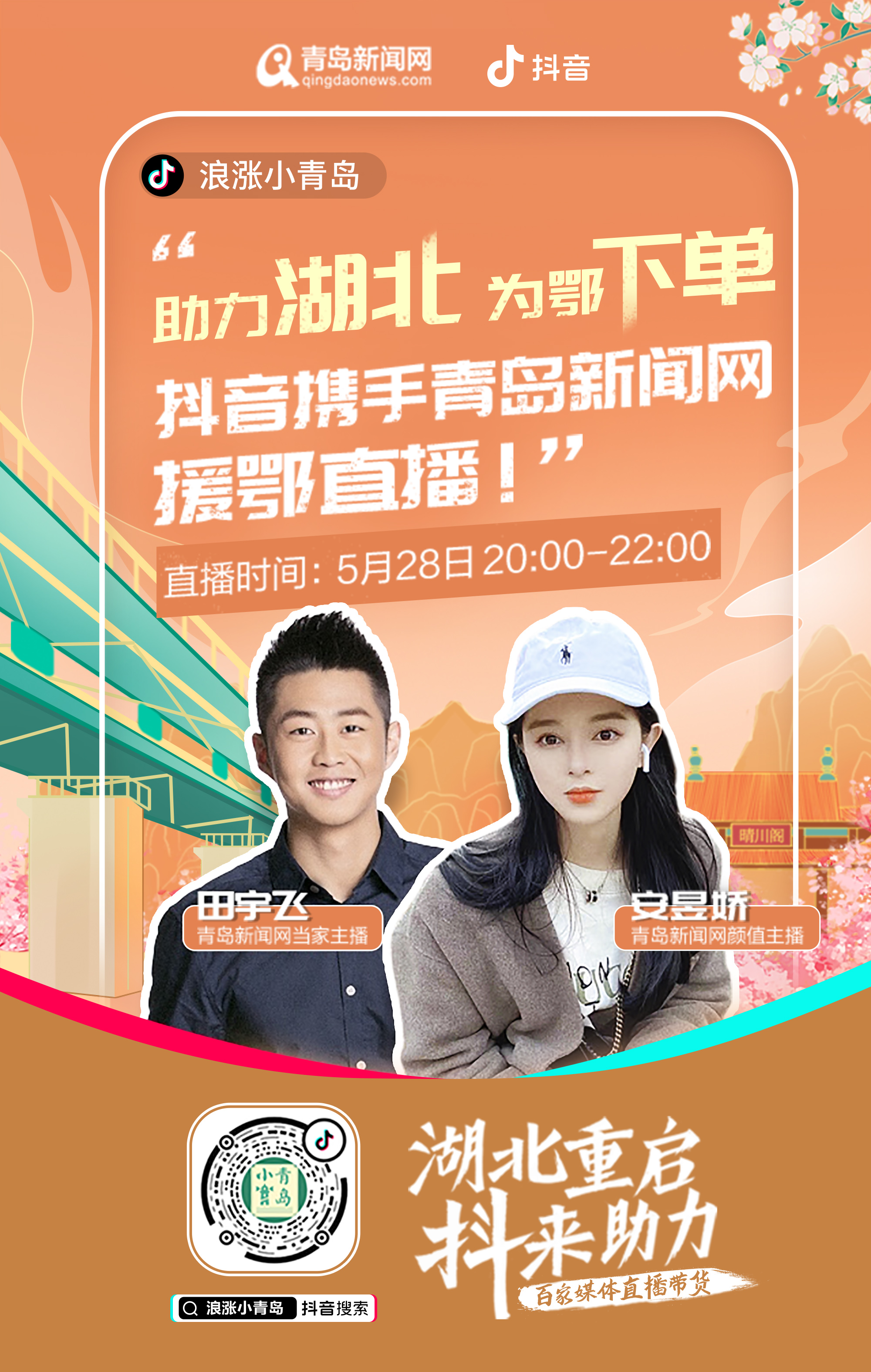 為推動(dòng)湖北企業(yè)復(fù)工復(fù)產(chǎn),助力湖北地區(qū)經(jīng)濟(jì)快速?gòu)?fù)蘇,抖音攜手全國(guó)上百家媒體共同參與直播帶貨活動(dòng),將湖北當(dāng)?shù)靥厣a(chǎn)品推向全國(guó),作為此次活動(dòng)參與方的青島新聞網(wǎng),也將于5月28日20點(diǎn)通過(guò)官方抖音號(hào)“浪漲小青島”進(jìn)行直播帶貨,網(wǎng)友可以直接通過(guò)抖音直播間下單,湖北好貨將直接快遞到家。