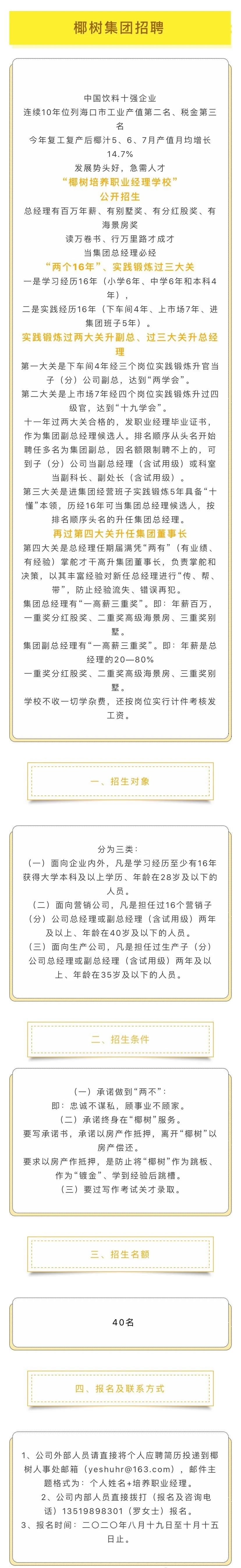 椰樹(shù)集團(tuán)發(fā)布招聘信息“椰樹(shù)培養(yǎng)職業(yè)經(jīng)理學(xué)校”公開(kāi)招生(圖據(jù)南海網(wǎng))