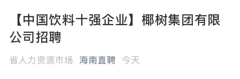 一則海南椰樹(shù)集團(tuán)的招聘信息