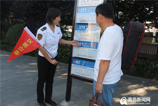 青島新聞網(wǎng)9月9日訊(記者 丁淑華 通訊員 于夢(mèng))“請(qǐng)您小心腳下,前面有行動(dòng)緩慢的乘客,請(qǐng)不要催促,保持安全距離,提前準(zhǔn)備好健康碼,祝您乘車愉快?!痹绺叻?,汽車東站公交站上人流如織,交運(yùn)溫馨巴士興達(dá)分公司機(jī)務(wù)科內(nèi)勤人員楊佳麗早早就上崗了。隨著青島進(jìn)入創(chuàng)城時(shí)刻,這個(gè)35歲的姑娘身上多了一個(gè)新角色:文明引導(dǎo)員。