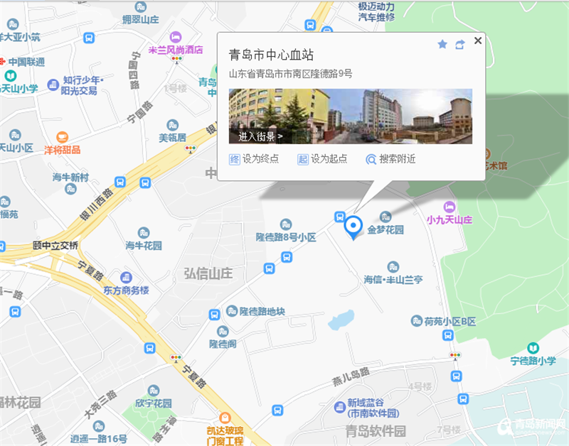 具體地址:青島市中心血站(市南區(qū)隆德路9號)