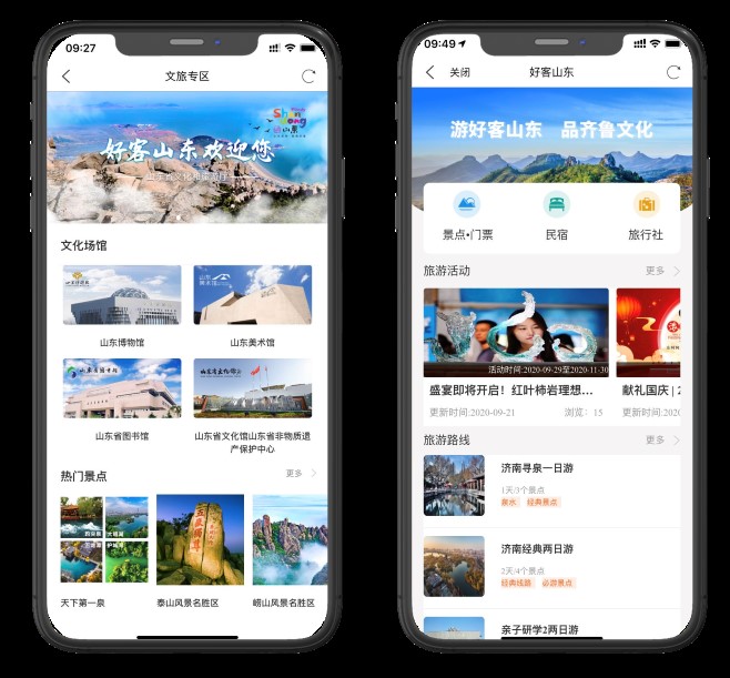 山東旅游綜合性公共服務平臺“好客山東”上線“愛山東”APP文旅專區(qū),在省文旅部門的支持下,專區(qū)整合了全省數(shù)千個旅游景點介紹、門票預訂、周邊游線路推薦、民宿推薦、旅行社查詢、文化場館參觀預約等文旅服務。
