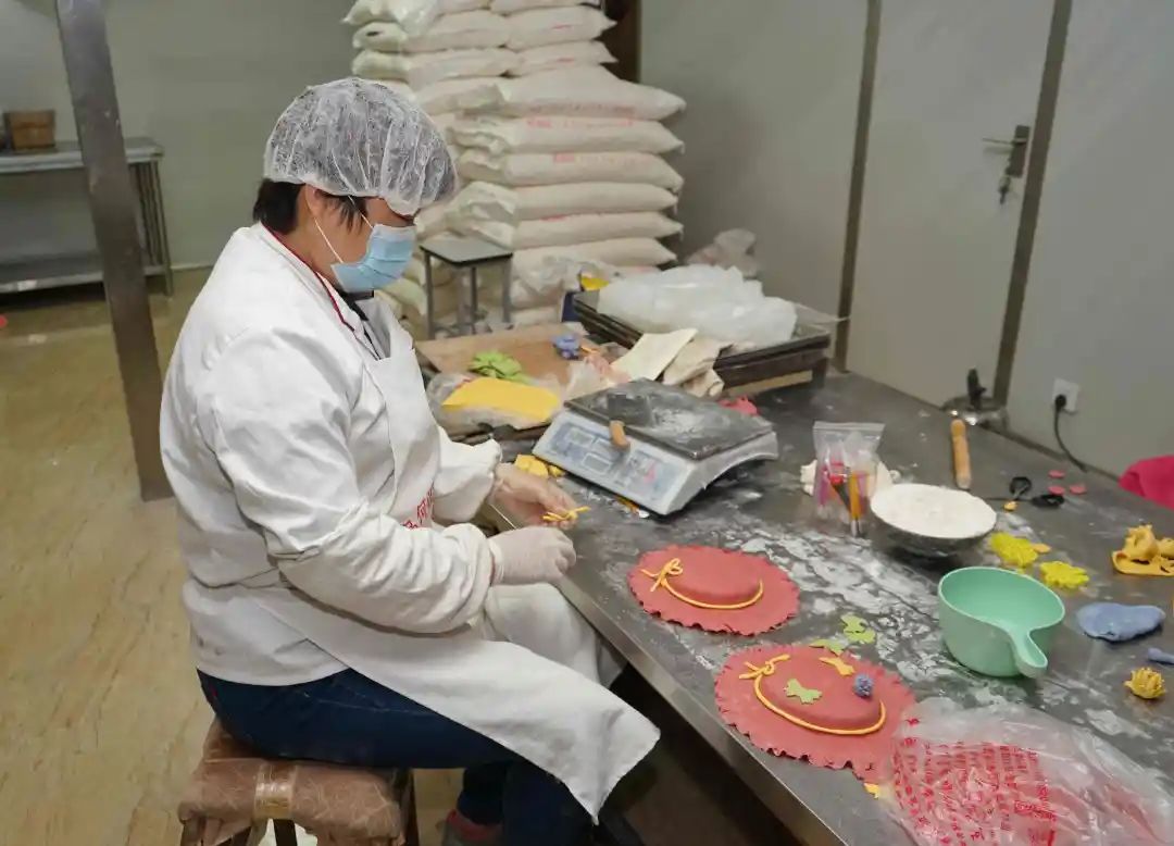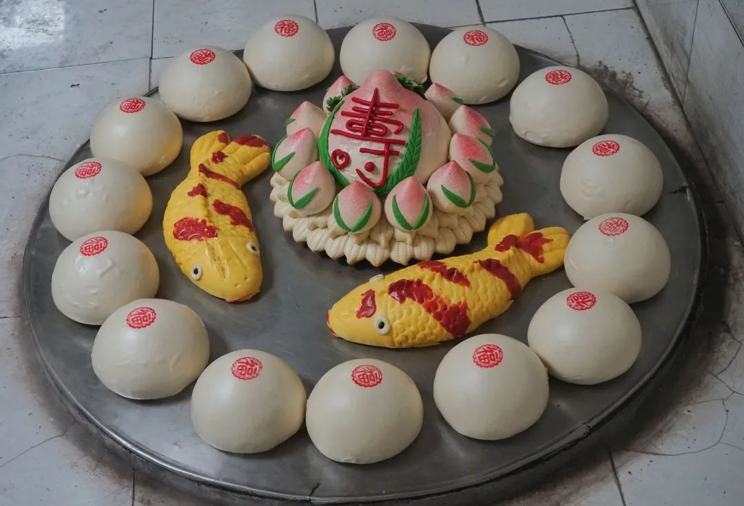 老人壽辰祝壽用的壽桃、錦鯉,還有各種小花形狀的彩色饅頭等等,無(wú)不讓人耳目一新。