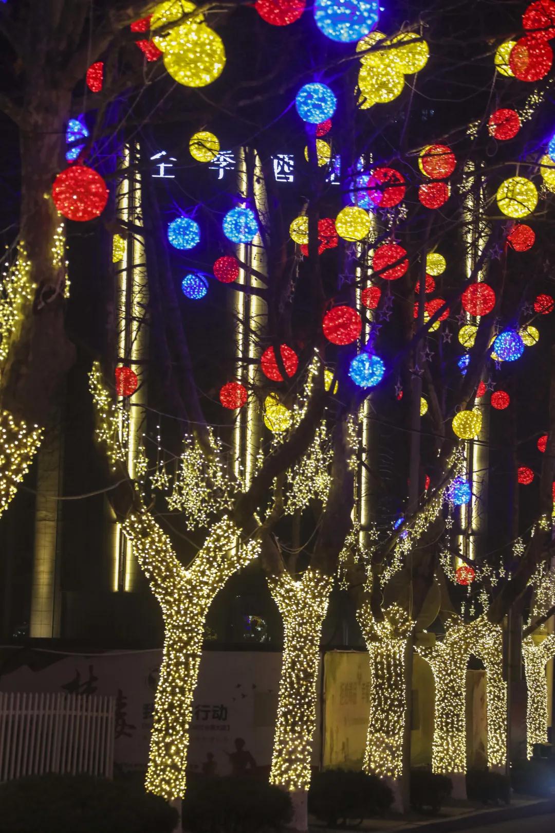 長白山路上燈火如晝,是傾城的美。彩色的燈球掛在樹梢,像一朵朵小小的煙花,從眼底綻放到心底。