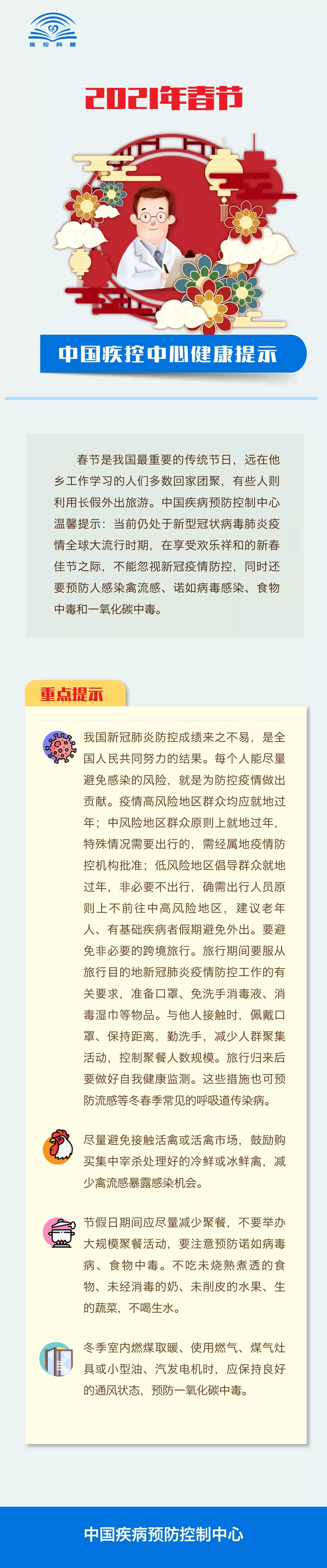 2021年春節(jié)需注意哪些疾病的防控?中國疾控中心健康提示告訴您!