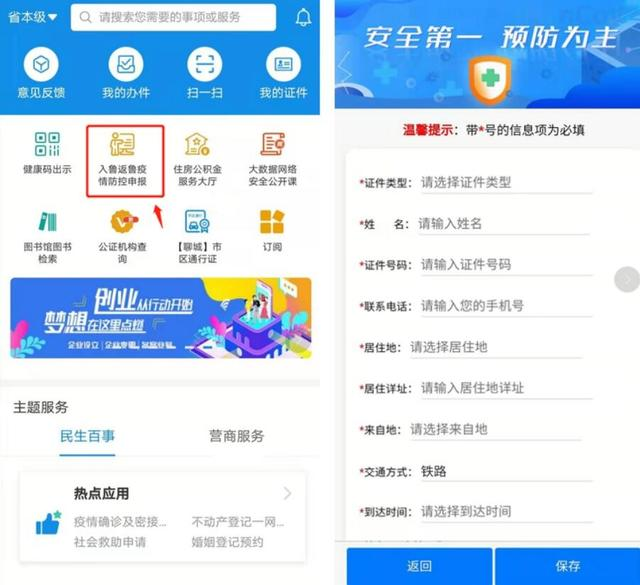 為提高疫情防控工作效率,省大數(shù)據(jù)局聯(lián)合省公安廳依托省移動(dòng)政務(wù)服務(wù)總門戶“愛山東”APP,上線了“入魯返魯疫情防控申報(bào)”應(yīng)用,為入魯返魯人員提供信息自主申報(bào)渠道,做到科學(xué)預(yù)防、精準(zhǔn)服務(wù)??靵硪黄鹂纯慈绾尾僮靼?!