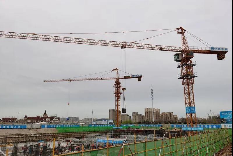 項(xiàng)目現(xiàn)場(chǎng)已經(jīng)支起了多個(gè)塔吊,機(jī)器聲轟鳴,熱火朝天的工作場(chǎng)景和靜謐的膠州灣形成鮮明對(duì)比。