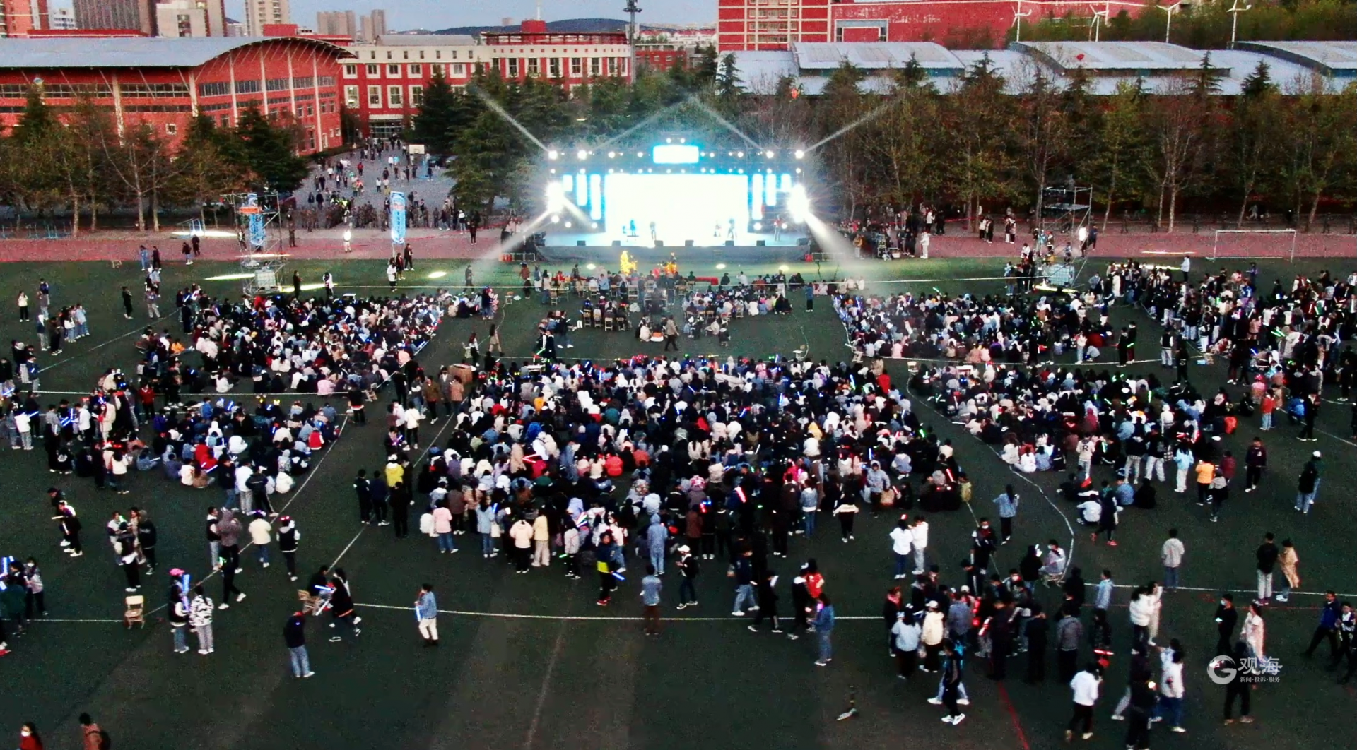 17日晚,在青島濱海學(xué)院,全校近7000名師生揮舞著黨旗和國(guó)旗,將偌大的運(yùn)動(dòng)場(chǎng)占滿,現(xiàn)場(chǎng)搭起酷炫舞臺(tái),近三個(gè)小時(shí)的演出高潮迭起。天空中,多架無人機(jī)航拍攝下精彩的場(chǎng)面,一首首動(dòng)聽的原創(chuàng)歌曲將年輕學(xué)子們帶入音樂追夢(mèng)空間,不少大學(xué)生說,聽說青年音樂節(jié)開場(chǎng)有段時(shí)間了,非常期待這次全??駳g。在現(xiàn)場(chǎng),觀眾們還有幸目睹了川劇變臉、合唱、朗誦、模特走秀、相聲等多種藝術(shù)形式,濱海學(xué)院團(tuán)委張守順老師說,音樂節(jié)為學(xué)校藝術(shù)教育搭建起更廣闊的舞臺(tái),打開了學(xué)生們的藝術(shù)空間,期待與青年音樂節(jié)達(dá)成更深一步合作。