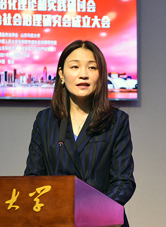 李克周代表學校對社會治理法治化理論與實踐研討會的召開暨青島市法學會社會治理研究會成立表示祝賀,對各位專家學者長期以來對學校的支持表示感謝。李克周表示,青島市法學會社會治理研究會的成立,是可喜可賀的事情,相信這個新的、充滿生機的研究會團體將成為青島市乃至全省、全國市域社會治理研究的重要陣地,成為理論界和實務(wù)界專家學者交流的重要平臺,必將不斷促進思想碰撞,摩擦出理論火花,不斷促進理論與實踐交融,開拓出社會治理新天地。