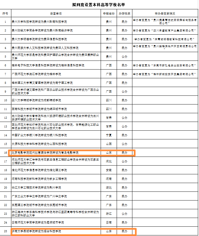 《關(guān)于擬同意設(shè)置本科高等學(xué)校的公示》,