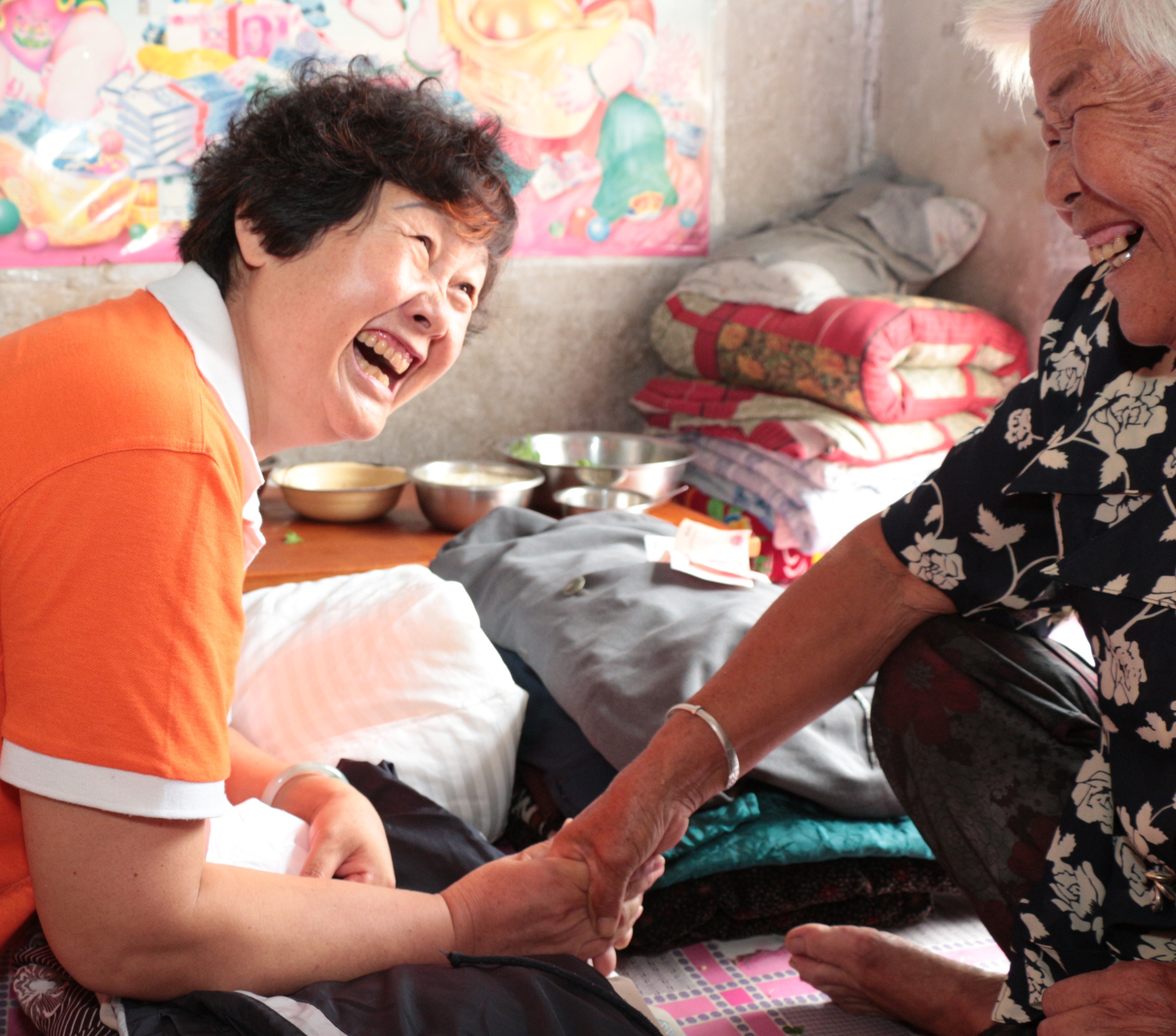 2006年冬天去萊西送溫暖,老遠就看到一位老太太站在村頭,又瘦又小,穿著一件小破襖,凍得直打哆嗦。她聽說上面要來人,大清早就出來了。她的兒子62歲,肢殘加智障,原本83歲的老人該享福了,卻成了這個家的支柱。我記得量體選衣時有一套銀灰色的羊絨衫,尺寸適合老太太,就說給這個老人吧。當時在場的志愿者說:笑姐,一個80多歲的農村老太太,能穿出去嗎?我說能,一定能,很可能是她一輩子都沒見過的。來到老人家里,家徒四壁,房門都是用玉米秸綁的,炕上冰涼,只有一床破被,兒子躺在炕上。當我們將送去的兩床新被給她兒子蓋上,老人換上羊絨衫后,頓時變了一個人。她笑得熱淚盈眶,在場的9個大學生志愿者都哭了。