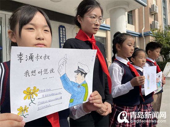 在李涌曾經(jīng)開(kāi)展交通安全授課的膠州市瑞華小學(xué),老師和同學(xué)們深情回憶了李涌警官給他們帶來(lái)的精彩的交通安全授課,同學(xué)們也精心制作了繪畫(huà)作品,以此表達(dá)對(duì)英雄的懷念和致敬?!皟赡昵?,我剛上一年級(jí)的時(shí)候,李涌叔叔曾給我們上過(guò)一節(jié)安全課,他的教導(dǎo)一直提醒著我們安全出行記心間?!睂W(xué)生王?,幷f(shuō)。