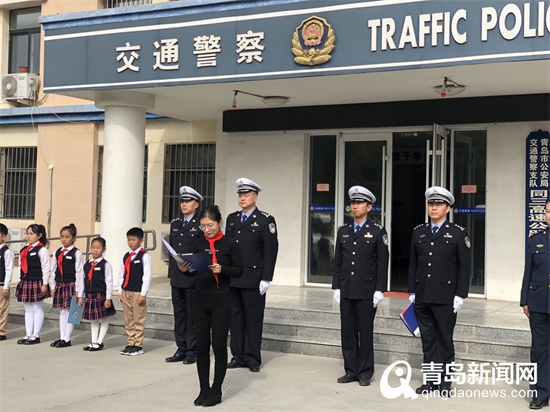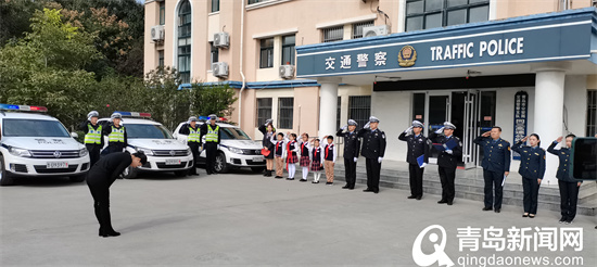 10月20日上午,在青島交警同三高速公路大隊(duì)駐地,“向李涌學(xué)習(xí)致敬活動(dòng)暨巡邏急救包發(fā)放儀式”舉行?;顒?dòng)儀式上,李涌的女兒李圣來(lái)到現(xiàn)場(chǎng),和大隊(duì)民警代表、膠州路政管理處代表、青島瑞華小學(xué)師生代表們一起緬懷英雄,向英雄致敬!在場(chǎng)的同三高速大隊(duì)的民輔警們向英雄的女兒李圣敬禮,青島瑞華小學(xué)的學(xué)生們?yōu)槔钍狭缩r艷的紅領(lǐng)巾,向英雄的女兒致以崇高的敬禮。