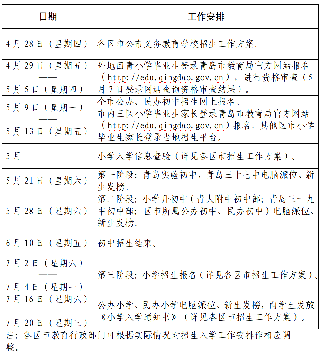 (1)在市內(nèi)三區(qū)以外小學(xué)就讀,需回市內(nèi)三區(qū)初中就讀的學(xué)生,于4月29日(星期五)至5月5日(星期四)登錄青島市教育局官方網(wǎng)站報(bào)名,進(jìn)行資格審查。