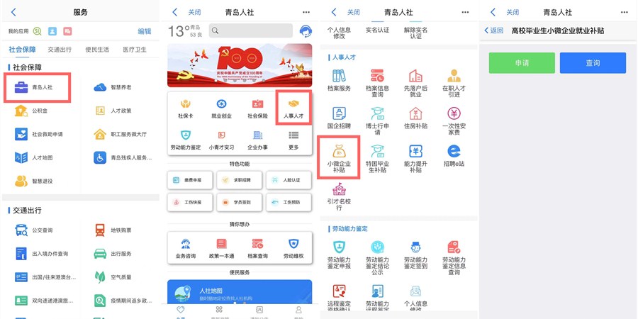 高校畢業(yè)生小微企業(yè)就業(yè)補(bǔ)貼標(biāo)準(zhǔn)每人每月400元,自首次申領(lǐng)補(bǔ)貼月份起36個(gè)月內(nèi)可享受補(bǔ)貼。以往符合條件的畢業(yè)生可登錄“青島人才網(wǎng)”申請(qǐng)?,F(xiàn)在,補(bǔ)貼申請(qǐng)又添新渠道。申請(qǐng)人可在“愛山東·青e辦”APP內(nèi)的青島人社應(yīng)用內(nèi)直接申請(qǐng)。首先,在“愛山東·青e辦”APP“服務(wù)”詳情頁找到社會(huì)保障分類下的“青島人社”應(yīng)用;然后,在應(yīng)用詳情頁的“人事人才”欄目下,找到“小微企業(yè)補(bǔ)貼”模塊,進(jìn)入詳情頁后根據(jù)要求填寫信息后提交補(bǔ)貼申請(qǐng)。申請(qǐng)完成后,還可點(diǎn)擊查詢按鈕,進(jìn)行已申請(qǐng)的補(bǔ)貼項(xiàng)目信息查詢。