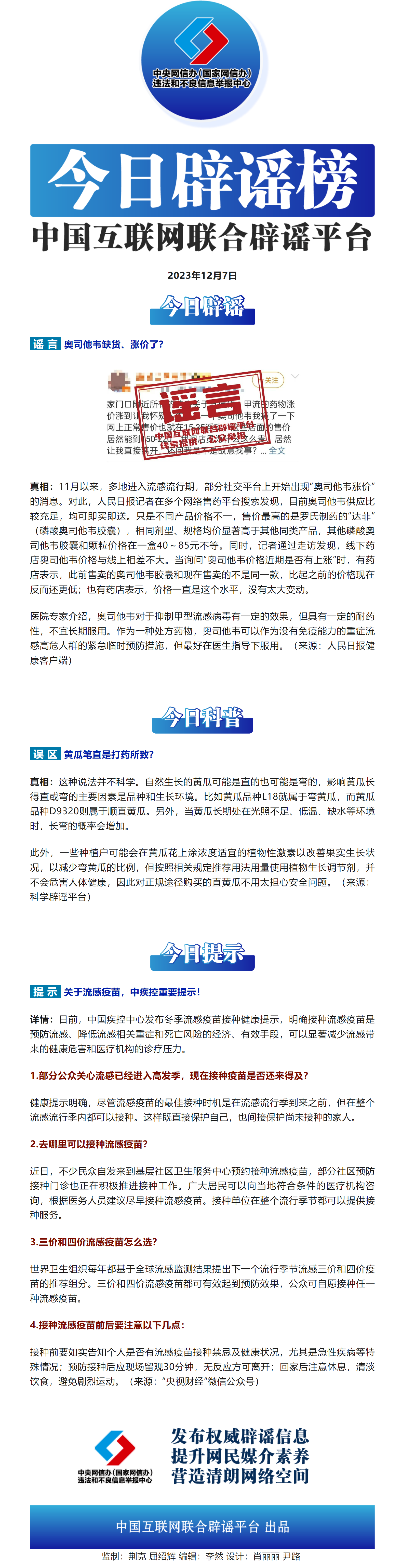 今日辟謠(2023年12月7日)