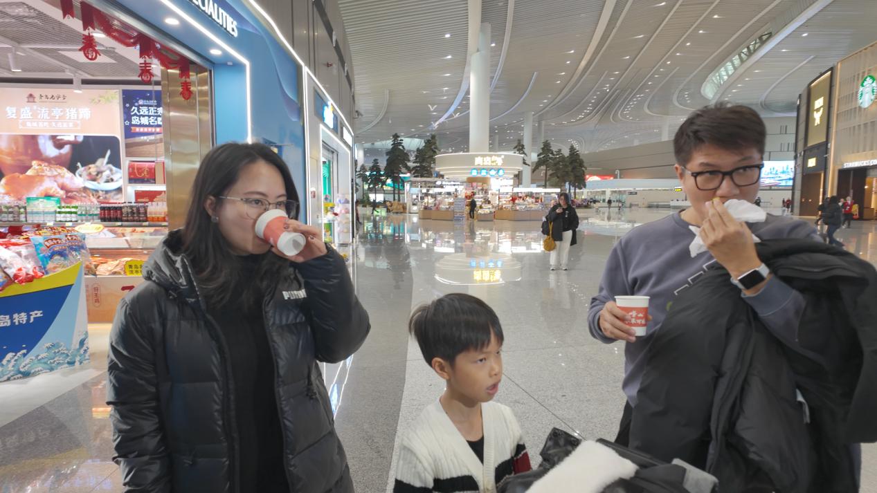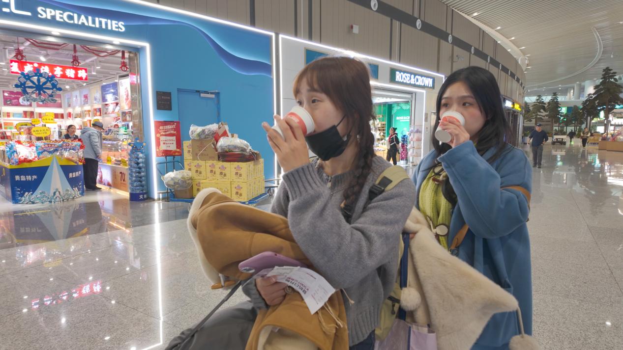 1月22日,在青島膠東國際機場安檢隔離區(qū)內(nèi)青島福泉大地山東特產(chǎn)匯青島好禮品質(zhì)館門前,一杯杯溫暖的嶗山熱可樂免費發(fā)送到了每一位行色匆匆的旅客手中,獨特的草本香氣充滿了整個機場出發(fā)大廳,為春運回家的人們送上獨有的“青島祝?!?。