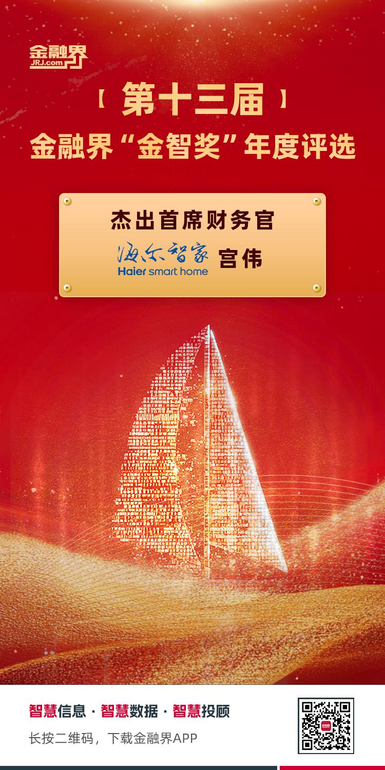 近日,第十三屆金融界“金智獎(jiǎng)”年度評(píng)選結(jié)果揭曉,海爾智家宮偉獲評(píng)“杰出首席財(cái)務(wù)官”。