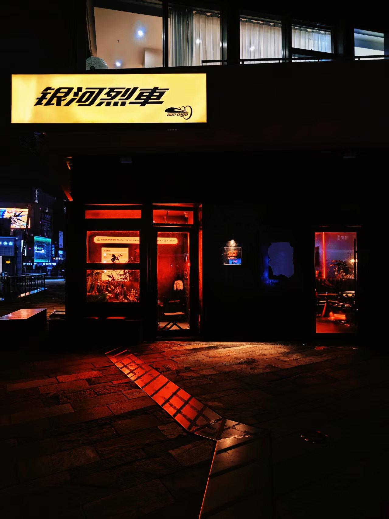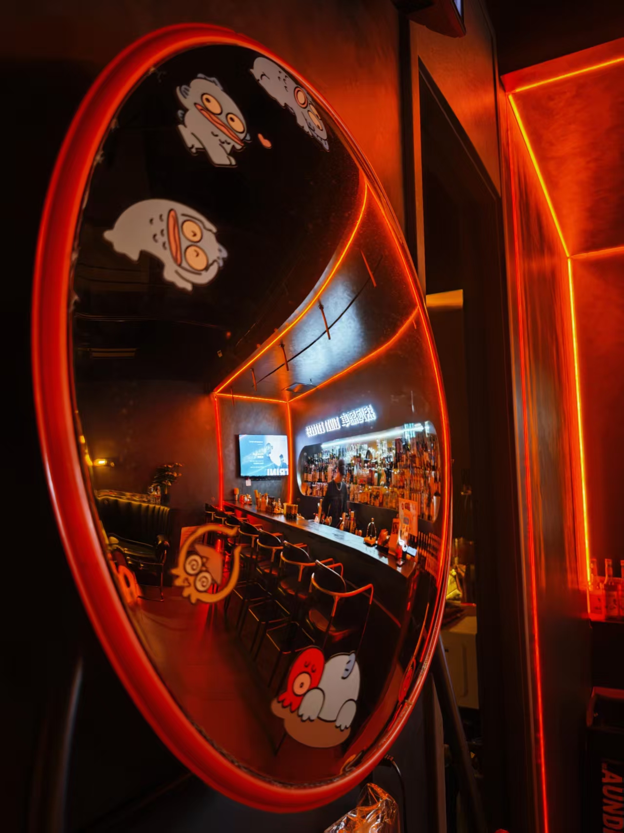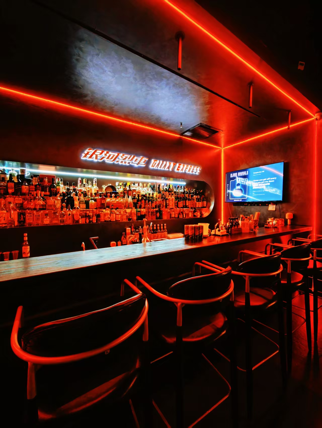 賽博朋克×星際漫游裝修美學(xué),推門即穿越,黑橙主色調(diào)碰撞霓虹光帶,360°環(huán)繞座位包裹每一寸神經(jīng),吧臺化作太空艙操作臺——這里不是酒吧,是《銀河護(hù)衛(wèi)隊》同款星際列車的青島分車。踏入這里,就像登上了通往宇宙的列車,開啟一場奇幻冒險。
