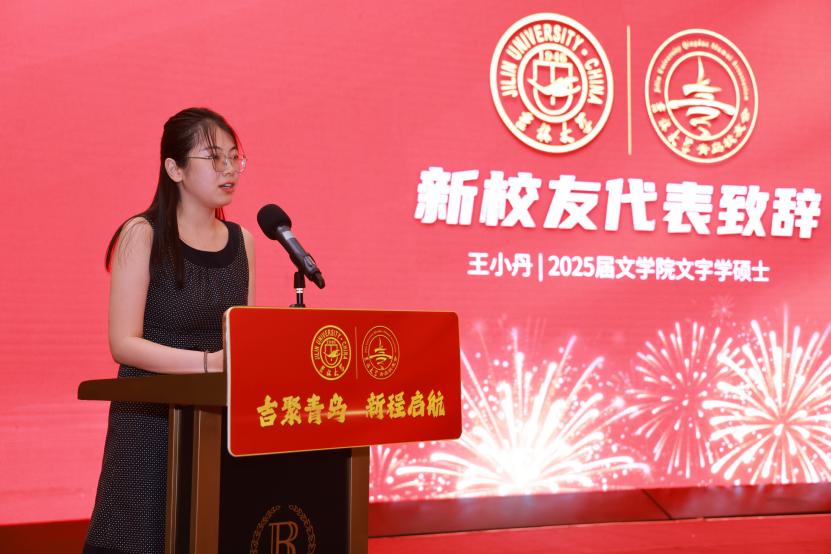 2025屆文學(xué)院畢業(yè)生王小丹作為新校友代表發(fā)言,表達了對母校的感恩之情及初到青島在校友大家庭找到了歸屬感。新校友的加入不僅為校友會注入了新鮮血液,也為吉大精神的代際傳承注入了新的活力。